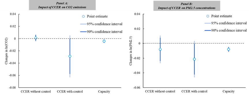 该研究基于县级面板数据,构建CSDID模型和三重差分模型评估了中国核证自愿减排量(CCER)对空气污染与环境公正的影响。结果显示,CCER建设使县级二氧化碳排放下降2.89%、PM₂.₅浓度下降2.13%;同时,CCER建设能够使经济不发达县与少数民族县的PM₂.₅浓度分别额外下降2.05%与3.34%。进一步分析显示,可再生能源类项目带来的改善效果更为显著,而绿色投资与绿色创新水平是其发挥作用的主要机制。