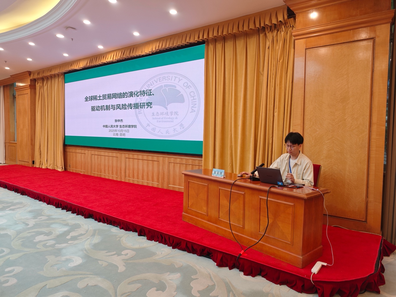 本次学术年会还举办了青年论坛,我院博士生张中杰和蒋艺璇分别作了题为“全球稀土贸易网络的演化特征、驱动机制与风险传播研究”、“ 人工智能如何影响能源转型--基于中国282个城市的实证研究”的学术报告,得到与会专家学者的点评与建议。