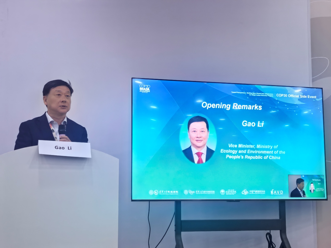 生态环境部副部长、COP30中国代表团团长李高发表开幕致辞。他强调透明度在落实《巴黎协定》中的核心作用,指出中国通过全国温室气体排放因子数据库、数字化 MRV 体系、碳足迹管理体系和气候风险评估框架,不断提升气候行动的可衡量性与可核查性。他表示,在全球供应链、融资和规则环境快速变化的背景下,加强开放与合作,特别是在数据、工具和能力建设领域,对于实现有效减排和推动公正转型至关重要。